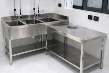 We manufacture bespoke kitchen fixtures using premium Grade 304 and 316 stainless steel, ensuring maximum hygiene, rust resistance, and long-lasting durability in demanding foodservice environments.